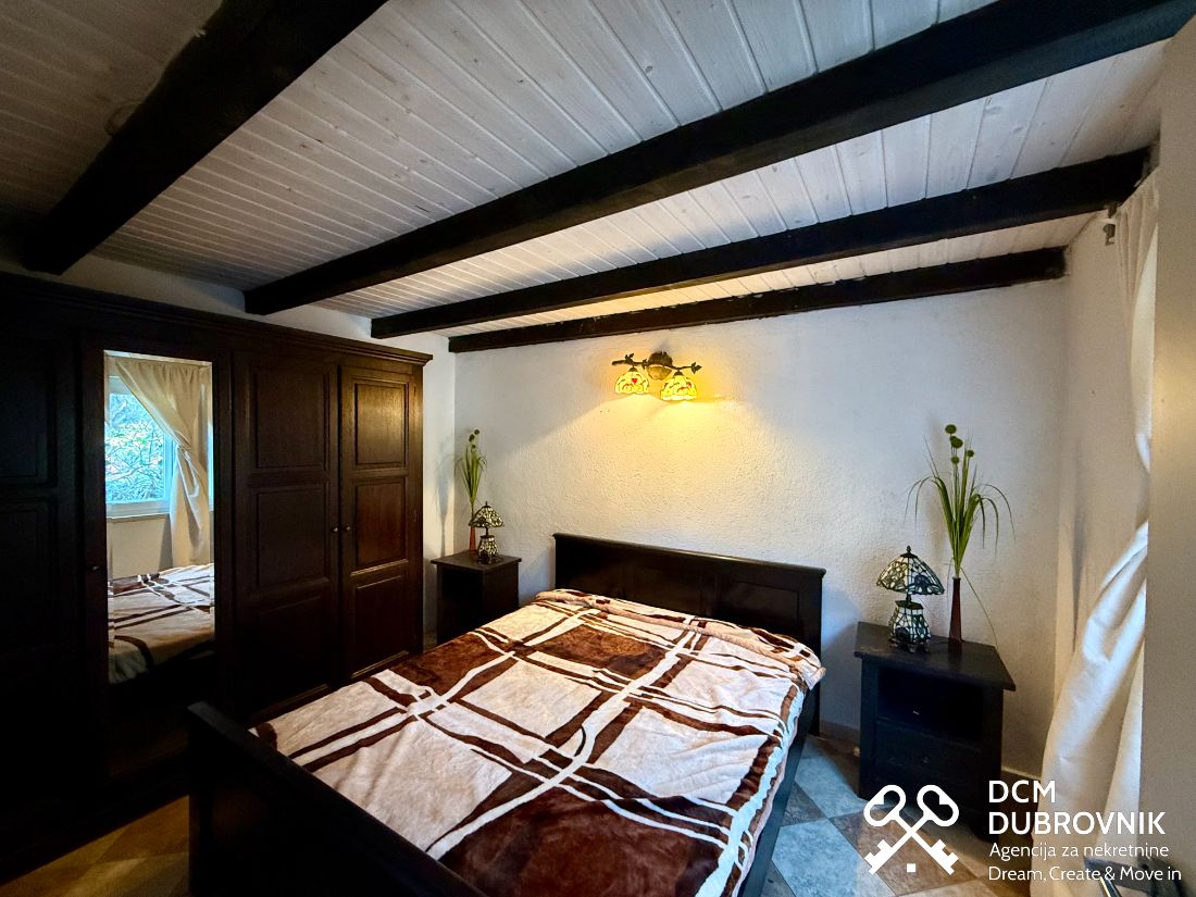 Donja kuća se sastoji od dva stana po 50 m2, svaki s dnevnim boravkom, kuhinjom i trpezarijom, jednom sobom i kupaonicom, te zahtijeva blage izmjene i prilagodbe kako bi poprimila svoj prvobitni šarm.